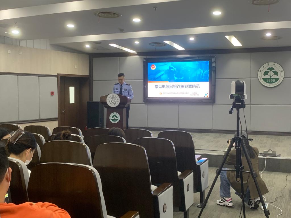 近日,为进一步提升学生防诈意识,保障学生的人身及财产安全,保卫干部、民警到各结对二级学院开展了“防诈骗知识进课堂”活动,此次活动采用互联网+现场教学的形式,方式新颖、内容丰富,旨在增强学生的反诈意识,起到了良好的宣教作用。