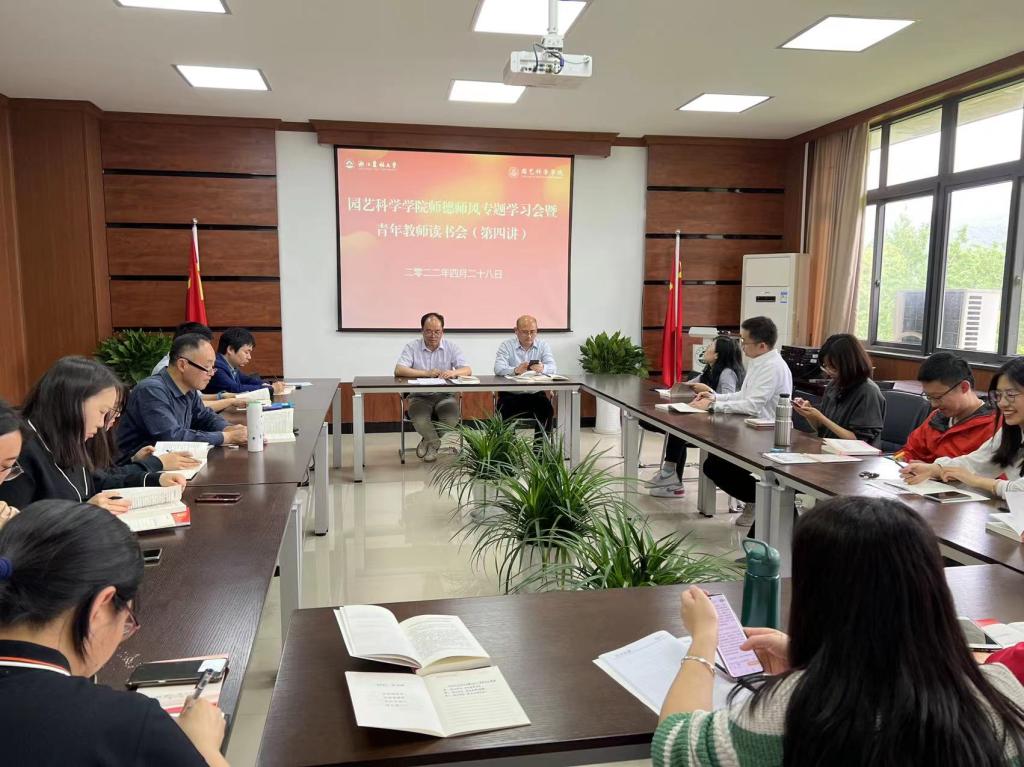 2022年4月28日下午,园艺学院在学15-612举行师德师风专题学习会暨青年教师读书会(第四讲)活动。