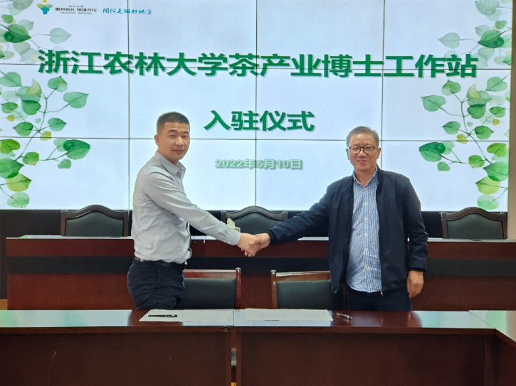 会上,茶学博士团队苏祝成教授与开化茶叶科学研究所签订入驻协议。