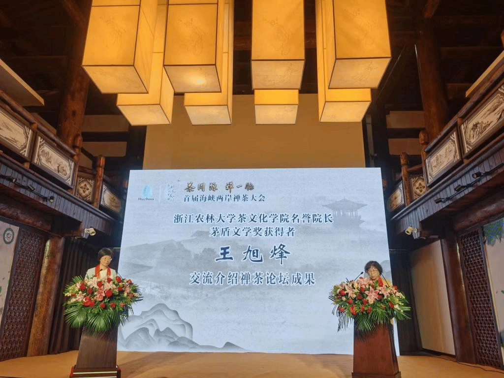5月12日下午,首届海峡两岸禅茶大会在湖州长兴开幕。茶学与茶文化学院名誉院长、茅盾文学奖获得者王旭烽教授团队应邀参加。浙江省政协原主席周国富,中国国民党前主席、中华青雁和平教育基金会董事长洪秀柱,浙江省政协原副主席王建满,浙江省台办主任庄跃成,湖州市委常委姜景峰等出席开幕式。150多位海峡两岸茶文化嘉宾、茶人代表及台商台青代表齐聚一堂,在“禅茶一味”中品味“茶同源,禅一脉”的文化底蕴。