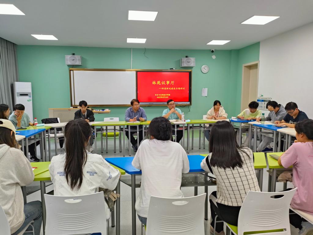 为深入贯彻落实学校“师德师风建设年”“学风建设年”动员部署会精神,广泛听取学生关于师德师风建设工作的意见和建议,5月19日下午,林生院召开“林苑议事厅”专题研讨师德师风建设。会议由学院学生工作负责人主持,学院分管教学负责人、年级辅导员、各年级本科生代表参加了座谈会。