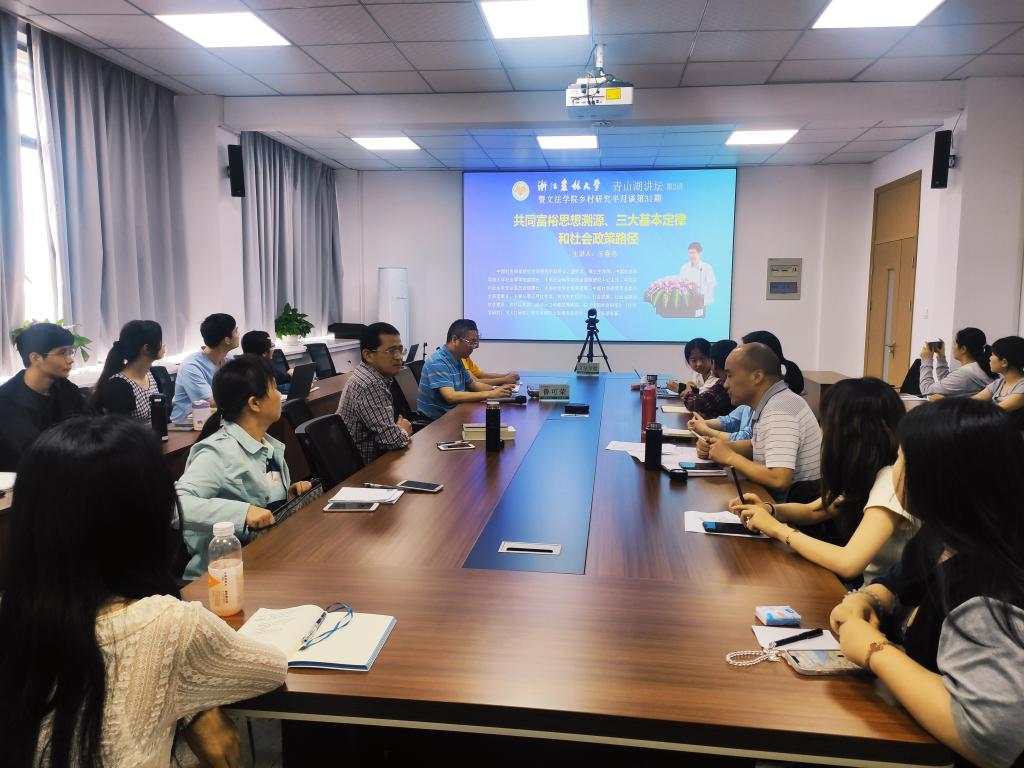 5月24日下午,文法学院举办BEAT365英国官网青山湖讲坛第二讲暨文法学院乡村研究半月谈第31期活动。本次活动邀请了中国社会科学院王春光教授作题为“共同富裕思想渊源、三大基本定律和社会政策路径”的学术报告。文法学院院长鲁可荣和公共管理学科、法学学科的部分老师以及部分研究生和本科生参加了会议。会议采用线上线下相结合的方式进行,线下主会场设在实验大楼612,另设两个分会场。