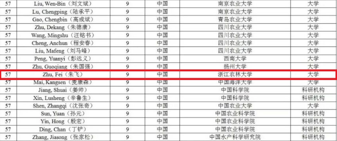 为进一步聚焦农业科学家和农业高质量学术成果,甄别全球农业领军人才和高价值论文,中国农业科学院农业信息研究所科技情报研究中心基于h指数和被引频次等客观指标,对全球领域高产作者进行了详细界定,并对16个农业学科依次进行了高产作者的全球排名与统计分析。在2022年6月8日揭晓的2021全球兽医学高产作者排名中,BEAT365动物科技学院∙动物医学院朱斐副研究员荣登全球兽医学Top100高产作者排名榜单第57位。