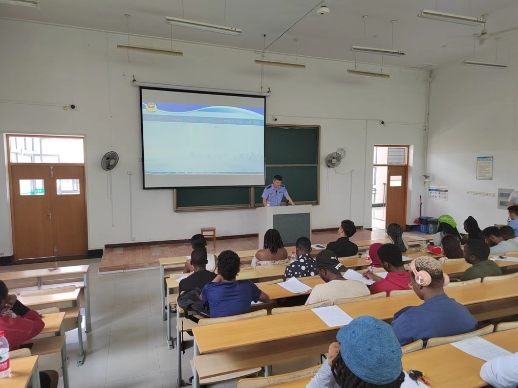 近日,国际教育学院(孔子学院)联合校保卫处、临安区公安局举办了2022年春季学期国际生法制安全教育大会。临安区公安局干警代表,保卫处干部,国教学院学生工作负责人、辅导员及全体在校国际生参加会议。