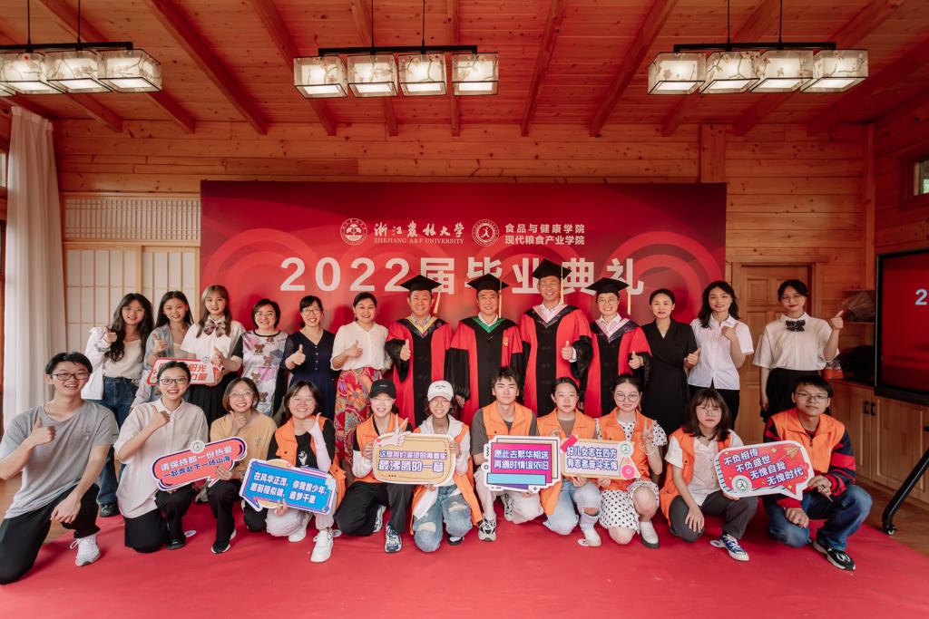 学院团学与志愿者对百草园进行了精心布置,排练了歌曲节目,为毕业生送上诚挚祝福,设置了系列立体造型展板,供大家合影留念。学院还通过举行2022届毕业生座谈、校友联络员和班级代表座谈、最后一堂党课等活动,祝贺毕业生完成学业,并希望他们“情留农林 心系食健”,带着对浙农林大对食健学院的美好回忆、带着全体老师们的美好祝福,勇敢踏上新的征程!