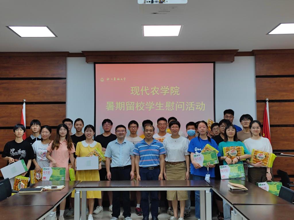 7月19日,农学院慰问暑期留校备战考研学子,学院院长曾大力、党委书记梁卫玲等学院相关负责人与同学们亲切交流,为同学们答疑解惑,并代表学院送上慰问品。学院辅导员参加活动。