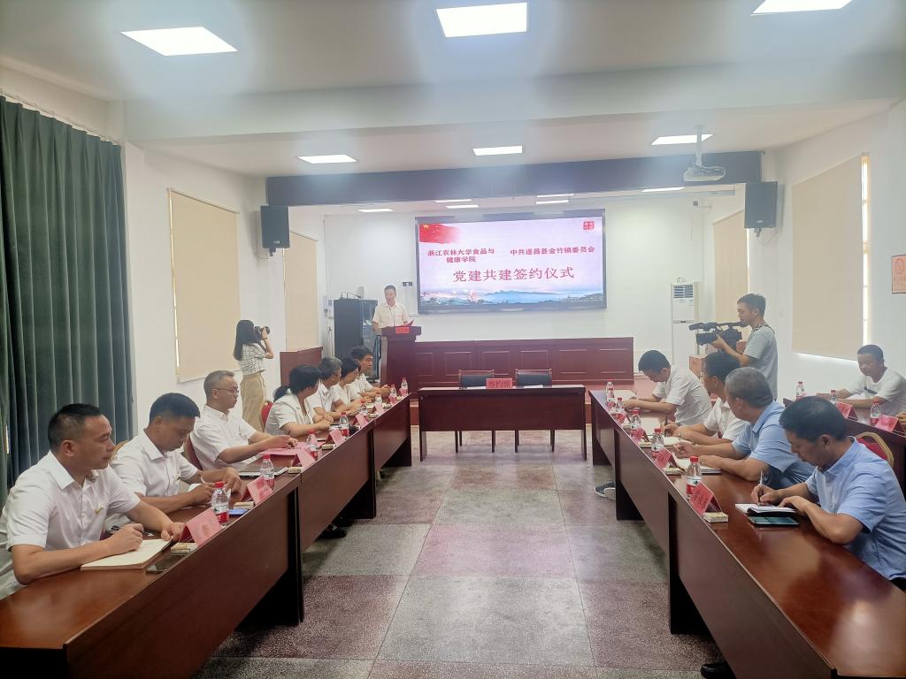 近日,食健学院一行赴丽水遂昌,与金竹镇签订党建共建协议。遂昌县党委宣传部部长潘吉文出席并致欢迎辞,县委组织部副部长周辛、食健学院党委书记汪和生等相关负责人等参加活动。