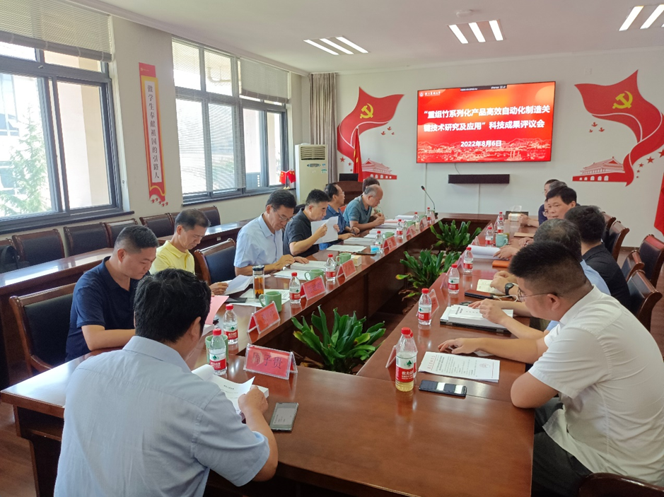 8月6日,浙江省林学会组织专家对光机电学院主持完成的“重组竹系列化产品高效自动化制造关键技术研究及应用”进行成果评价。国家林业和草原局竹子研究开发中心陈玉和研究员、浙江大学杨将新教授、南京林业大学李延军教授等组成专家评价委员会。评价会由浙江省林学会秘书长周子贵主持。学院院长周国泉等相关人员及项目组成员参加本次评价会。
