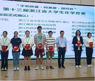 8月26日,“宇和政盛∙同源康∙国药杯”第十三届浙江省大学生化学竞赛举行颁奖仪式上,化材学院获得二等奖和三等奖各1项。李莎和张丽君老师指导的20级高分子材料专业周睿、王梓藤、许智超、翁宁同学组成的“高山流水觅高材队”获得二等奖,陈琳和郭建忠老师指导的20和21级应用化学专业李程、武亚如、陶怡婷、周畅同学组成的“共轭电子对队”获得三等奖。