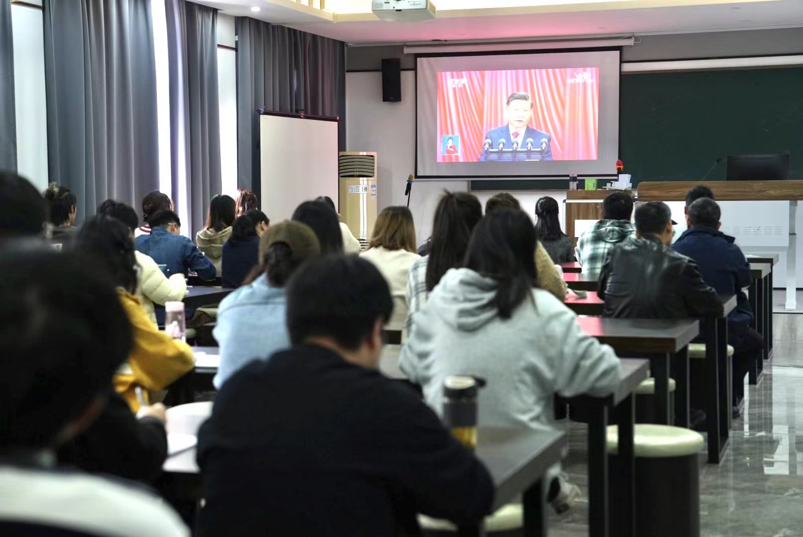 10月16日,中国共产党第二十次全国代表大会在北京隆重开幕,艺术学院组织全体师生党员观看二十大开幕会。