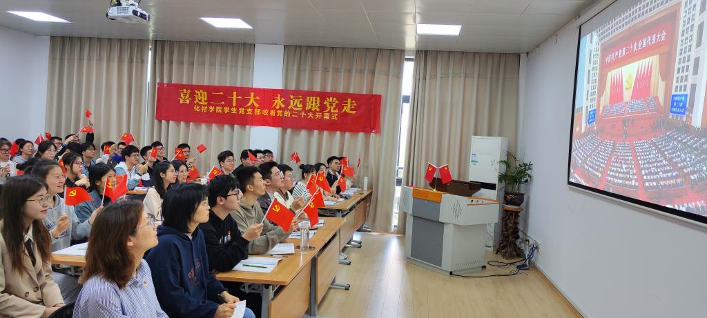 10月16日,中国共产党第二十次全国代表大会在北京隆重召开,化材学院组织全体党员师生集中收看了党的二十大开幕式直播盛况。