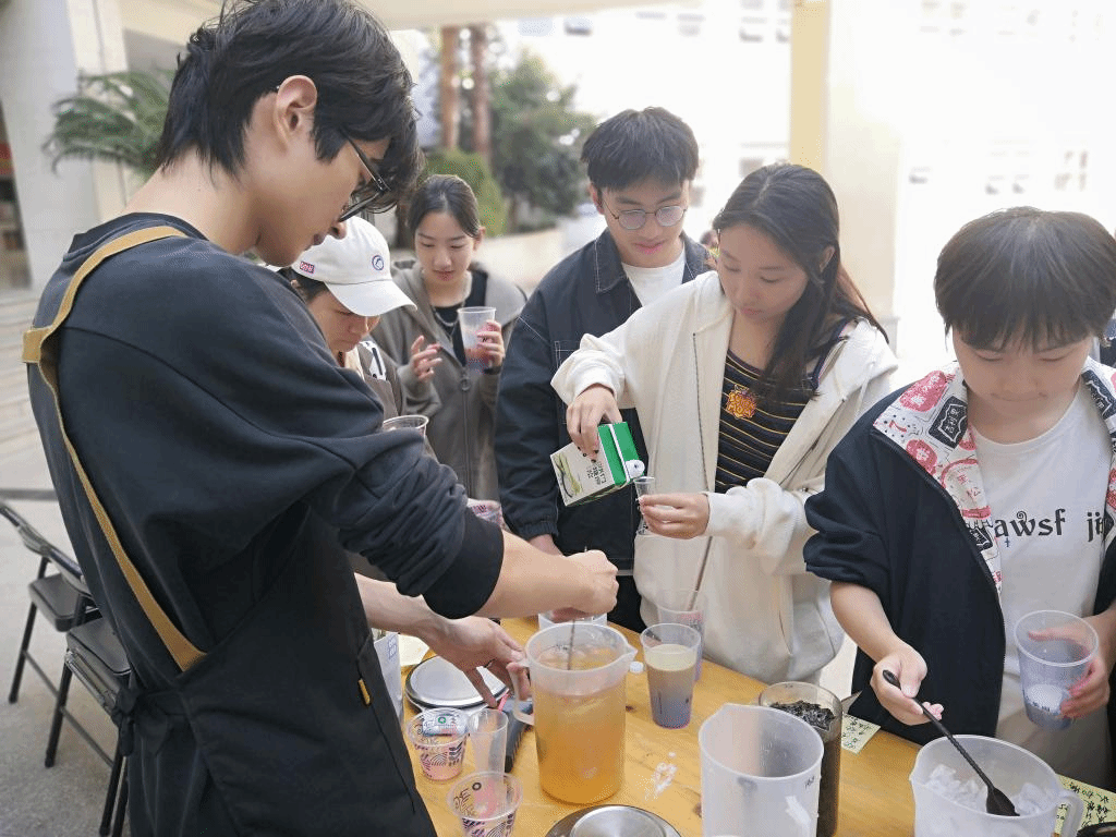 茶学院师生还现场自调自配茉莉奶茶等新式茶饮,参与活动的师生饮用后纷纷表示,香醇可口,在香气氤氲间体会到了茶的无限魅力。