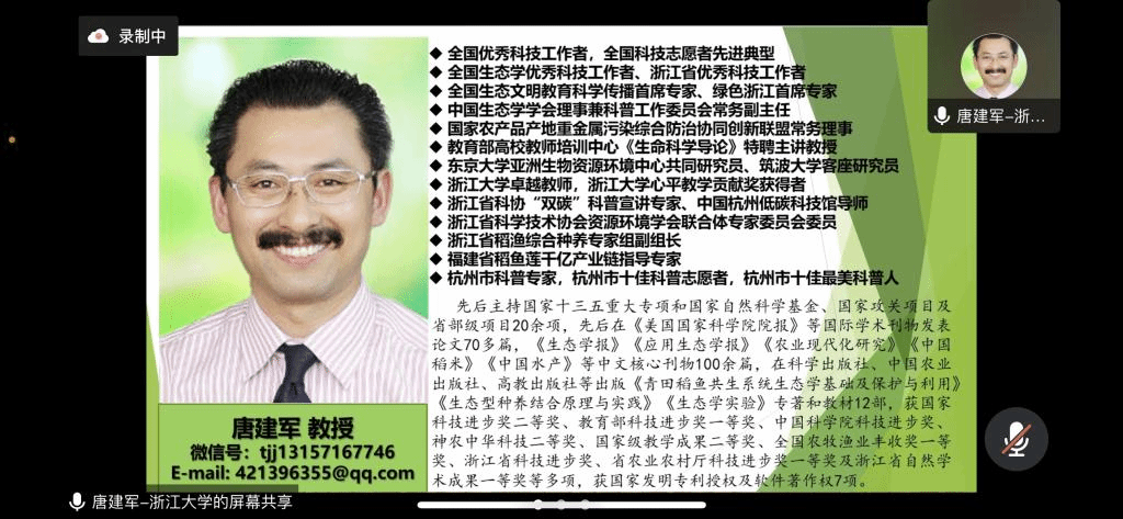 10月22日,由农学院承办的第二届生态节之生态学术报告会在图书馆第二报告厅举行。浙江大学生物科学系副主任、全国生态文明科学教育首席专家唐建军教授受邀为BEAT365师生作主题报告。报告会由农学院党委书记梁卫玲主持。