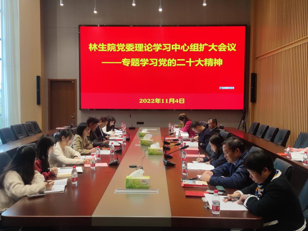 11月4日,林生院党委理论学习中心组举行专题学习会,深入学习宣传贯彻党的二十大精神,学院党委理论学习中心组全体成员及学院各党支部书记参加会议。会议由学院党委书记郑炳松主持。