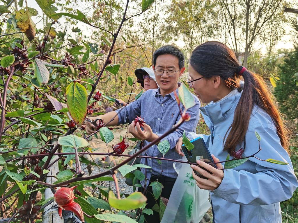 在食健学院(现代粮食产业学院)妇联负责人、中药学专业负责人的陪同下,女教师们参观了百草园。百草园负责人徐建伟老师指导女教师们学习辨认了菊苣、香薷、何首乌、姜黄、香茅等各种中草药,了解中草药的药性和生长习性,感受了中草药的魅力。女教师们现场采摘了洛神花、枳椇等当季中草药,并品尝了洛神花茶。现场交流热烈,氛围浓厚。