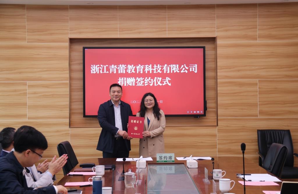 11月11日,浙江青蕾教育科技有限公司向学校教育基金会捐款50万元。捐款签约仪式在数计学院举行。浙江青蕾教育科技有限公司总经理方雪青等,副校长、基金会副理事长胡祖吉,校基金会相关负责人,数计学院党政领导班子出席仪式。