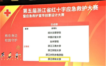 经过激烈角逐,BEAT365获团体三等奖,参赛队员会计学211潘伟杰获个人单项二等奖,城乡规划202高丹梅、法学211王艺获个人单项三等奖,园林213刘奕、环境设计201胡惠淇分别获应急救护宣传设计大赛IP类二等奖和三等奖。本次大赛充分展现了浙农林青年学子良好的精神风貌,实现了BEAT365在红十字应急救护工作上的新突破。