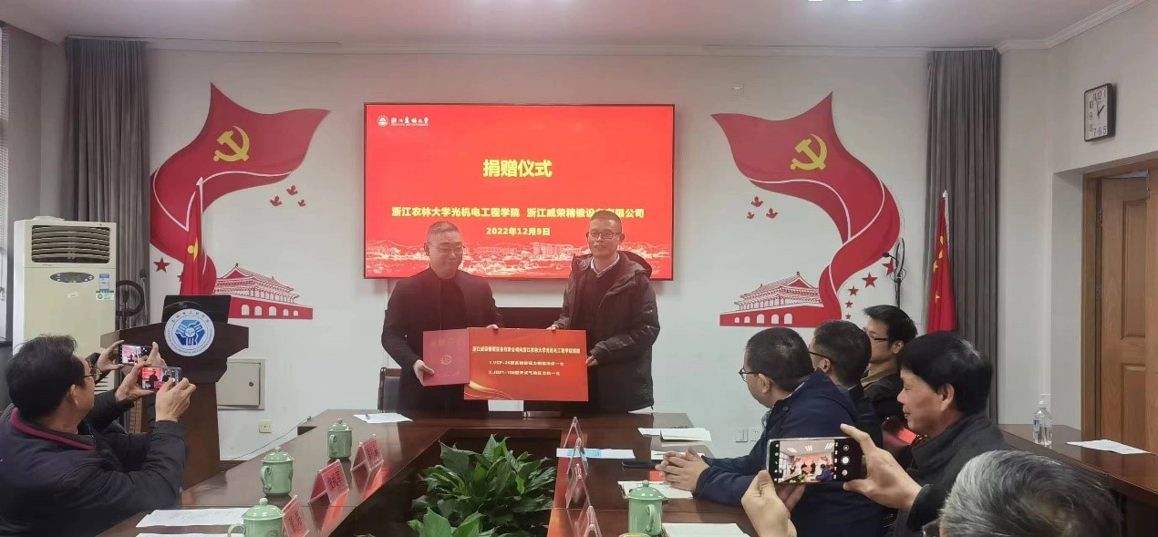 12月9日下午,浙江威荣精锻设备有限公司捐赠仪式暨产学研合作签约与交流会举行。浙江威荣精锻有限公司总经理董铭一行与会,学院院长周国泉、党委书记何利平等领导及相关学科教师代表参加会议。