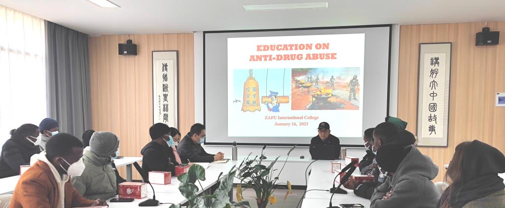 会上,赵有华作了以“珍惜生命”为主题的安全教育宣讲。他结合中国法律法规重点阐释了吸毒等违法行为对家庭对社会的严重危害性。他警告,在中国贩吸毒会被刑拘或判刑,任何人不要以身试法;他要求国际学生干部提高自我管理意识,密切关注国际生中存在的酗酒、晚归和扰民等不良现象,协助学院做好假期安全管理工作;希望国际生认真学习并严格遵守中国的法律法规,提升遵纪守法的意识,珍惜生命、远离毒品;鼓励国际生努力学习,积极参与“感知”中国传统文化和中国国情,争取毕业回国报效自己的国家。