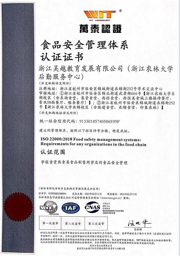 通过ISO22000食品安全管理体系认证审核,标志着后勤中心食品卫生管理制度化、精细化、规范化水平进一步提高,达到了行业认证的标准。后勤中心将持续加强对体系运行的指导和人员培训,加强体系运行的检查监督力度,切实提高体系的适应性、符合性和有效性,不断改进管理手段和管理方式,为全校师生的食品卫生安全保驾护航。
