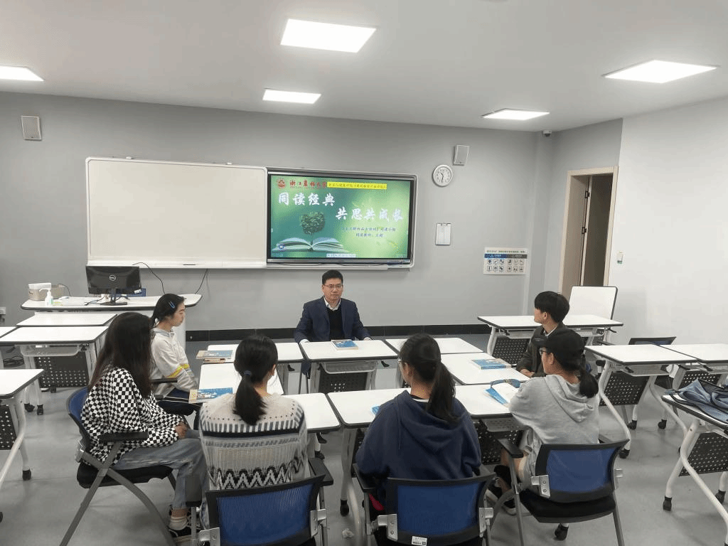 该活动第一期由院长、学科老师、辅导员等5位教师带领5组学生分别阅读《上海的金枝玉叶》《平凡的世界》《王立群妙品古诗词》《可复制的领导力》《非暴力沟通》5本经典书籍,参与学生60余人。第一次师生共读会上,“同读教师”分享了阅读感悟,以及阅读给自己生活、学习和工作等带来的影响,鼓励同学们坚持每天阅读,细细品味,学会自我思考。