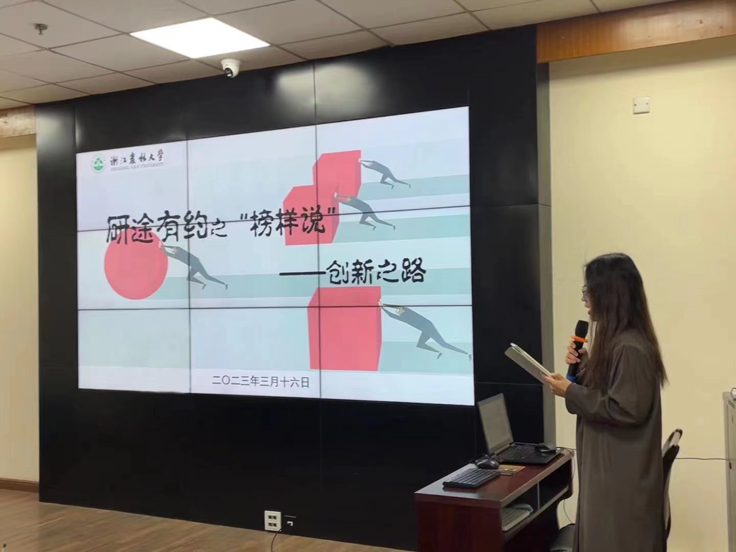 艺术学院的韩金锦同学以大学生乡村振兴创意大赛为例,从如何确定选题、拟定计划、深入调研、深化文本、答辩准备等方面向同学们分享了自己的经验,重点讲述了自己在答辩过程中许多实用的干货技巧。