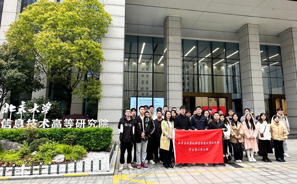 为进一步深化支部主题党日活动内涵, 3月30日下午,由计算机专业学生第二党支部负责人带队,支部近30人集中前往浙江省北大信息技术高等研究院参观学习。