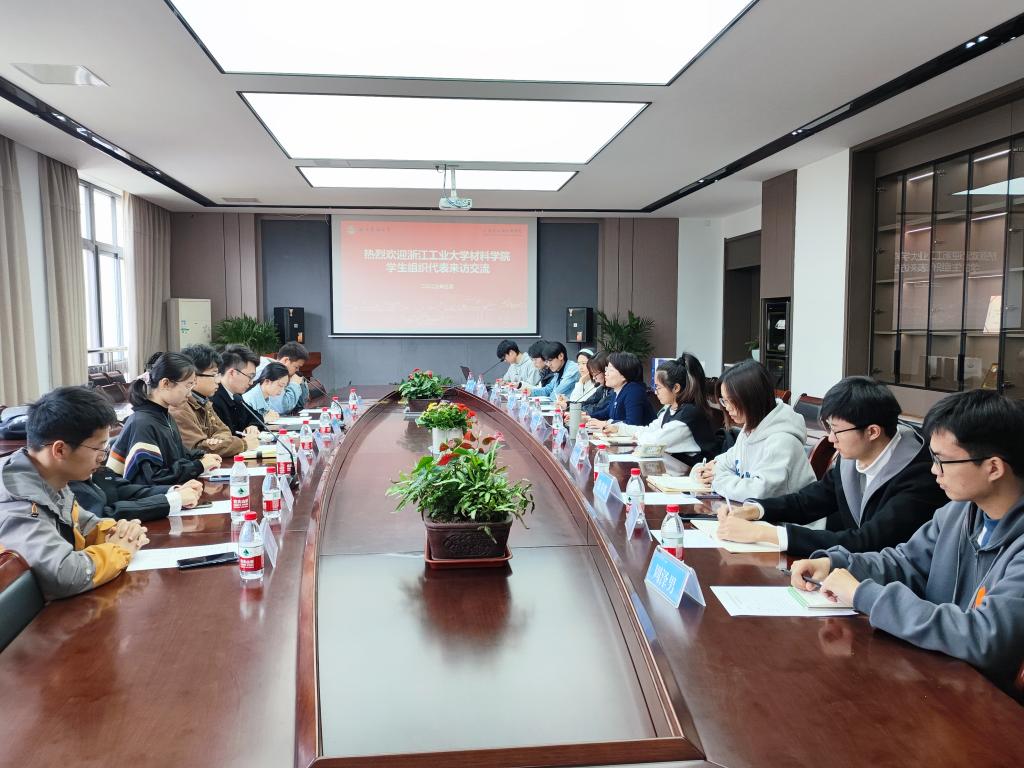 化材学院相关领导对浙江工业大学材料学院来院交流表示欢迎,简要介绍了学院和团学工作情况,希望双方团学组织加强沟通交流,相互学习借鉴,全心全意为同学做好服务。