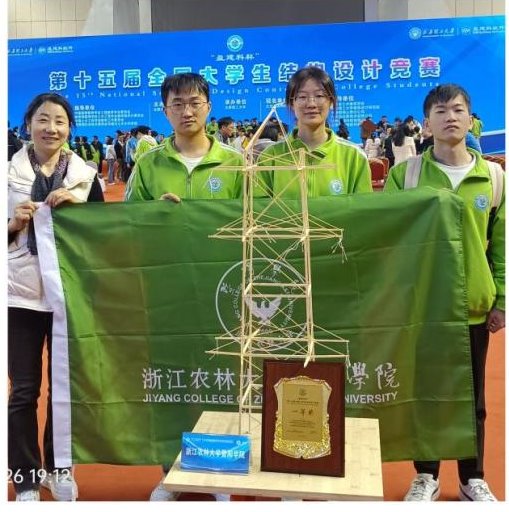 近日,第十五届全国大学生结构设计竞赛在太原理工大学举行。来自暨阳学院的刘可东、金怡婷、杨大嵩三位学子在吴新燕老师的指导下,与清华大学、同济大学、上海交通大学、哈尔滨工业大学等众多名校代表队激烈角逐,经过16个小时现场模型制作、陈述答辩和模型加载,脱颖而出,荣获一等奖。