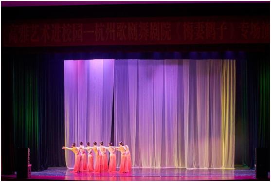 4月10日晚,校团委组织开展高雅艺术进校园活动,特邀杭州歌剧舞剧院(杭州江南丝竹南宋乐舞传习院)演出舞剧《梅妻鹤子》,1000多余名师生共同观赏演出。