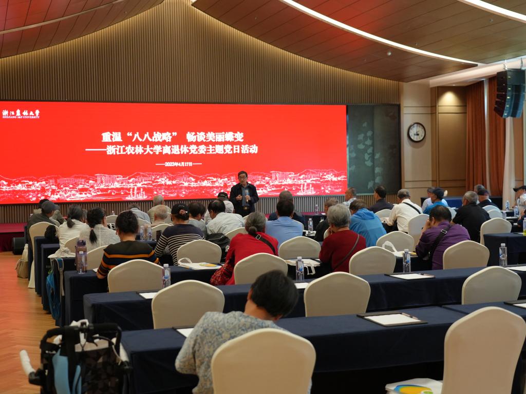 4月17日,学校离退休党委举办了“重温‘八八战略’畅谈美丽蝶变”主题党日活动,活动由离退休党委书记余剑耀主持,50余名离退休党员参加。