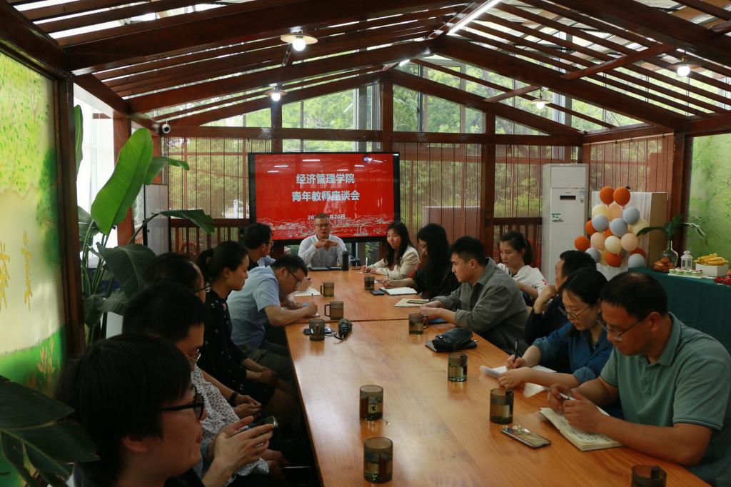 4月20日下午,经济管理学院青年教师座谈会在衣锦校区森活馆召开。学院党政班子成员,近五年入校的20余位青年教师参加了座谈会。