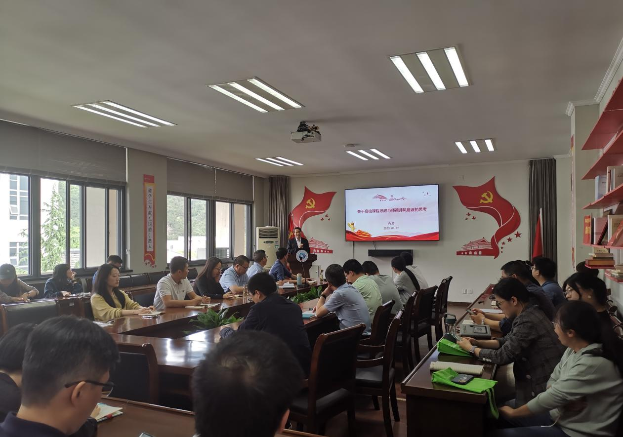 4月20日下午,光机电学院举办学习贯彻习近平新时代中国特色社会主义思想主题教育专题讲座,邀请马克思主义学院院长高君教授作题为《关于高校课程思政与师德师风建设的思考》的报告。讲座由学院党委书记何利平主持,全体教职工参加。
