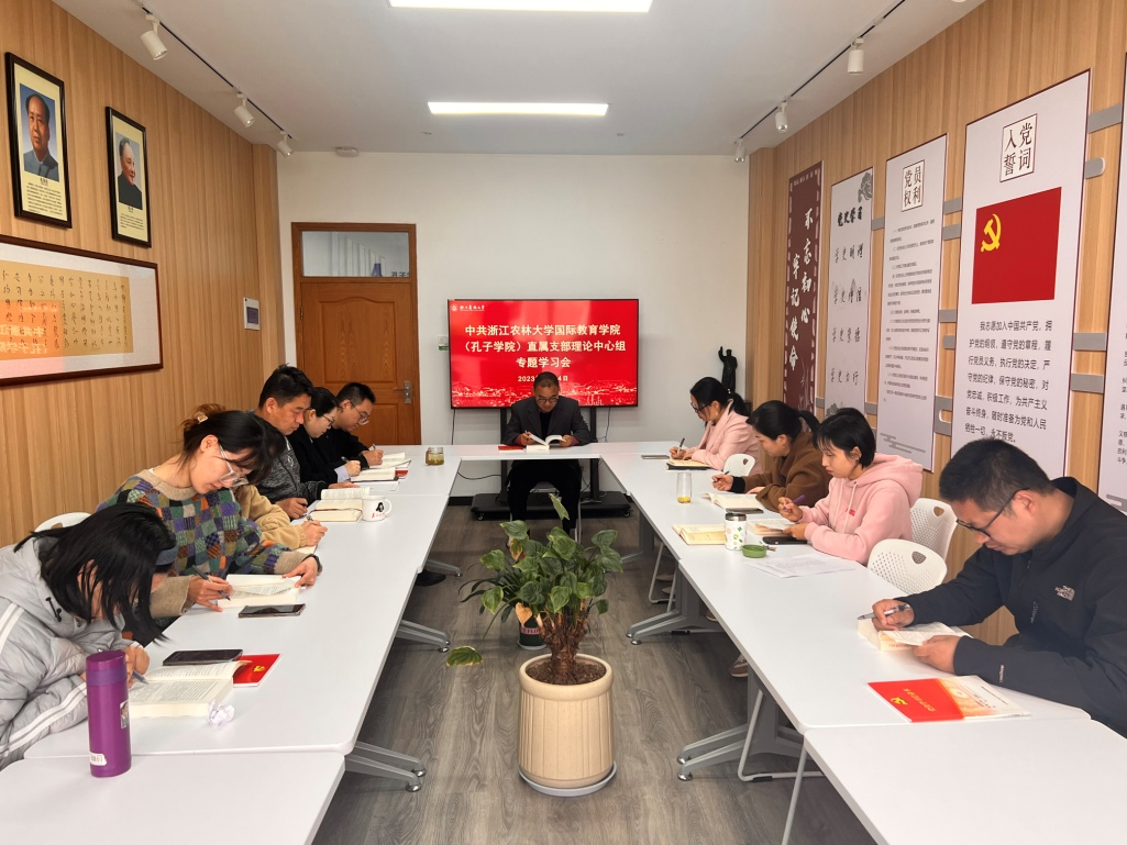 4月24日,国教学院直属党支部举办学习贯彻习近平新时代中国特色社会主义思想主题教育专题学习会,集中学习《习近平著作选读》和《习近平新时代中国特色社会主义思想专题摘编》有关篇章。学习会由学院直属党支部书记赵有华主持,学院全体党员参加。