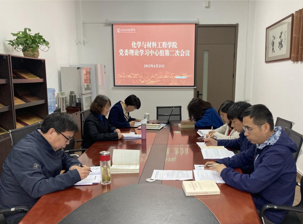 4月25日,化材学院党委理论学习中心组召开习近平新时代中国特色社会主义思想主题教育专题学习会,集中学习《习近平新时代中国特色社会主义思想专题摘编》有关篇章。会议由学院党委书记谢志新主持,学院党政领导班子参加会议。