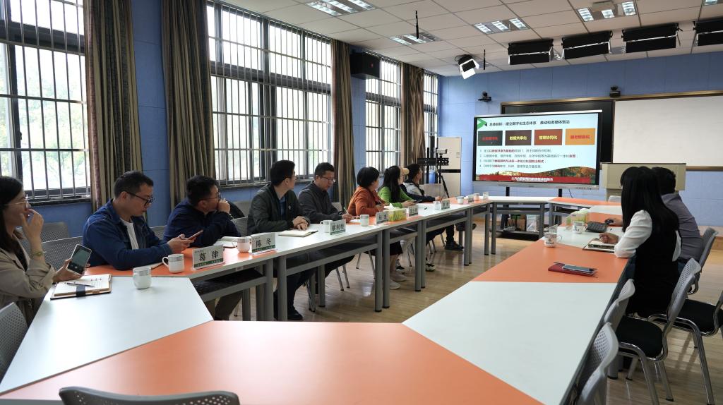 莫路锋对苏玉婷一行来校调研表示欢迎。他从理念思路、建设历程、数据治理和体制机制等方面介绍了BEAT365数字化改革的基本情况,并演示了天目云智慧教学平台。苏玉婷简要介绍了浙江工商大学杭州商学院的基本情况,她对BEAT365数字化改革工作取得的成果表示赞赏和肯定。她表示,数字化改革工作不破不立,杭商院要学习借鉴浙农林大的经验,加快人才队伍建设和数据治理工作的推进,进一步提升信息化建设。