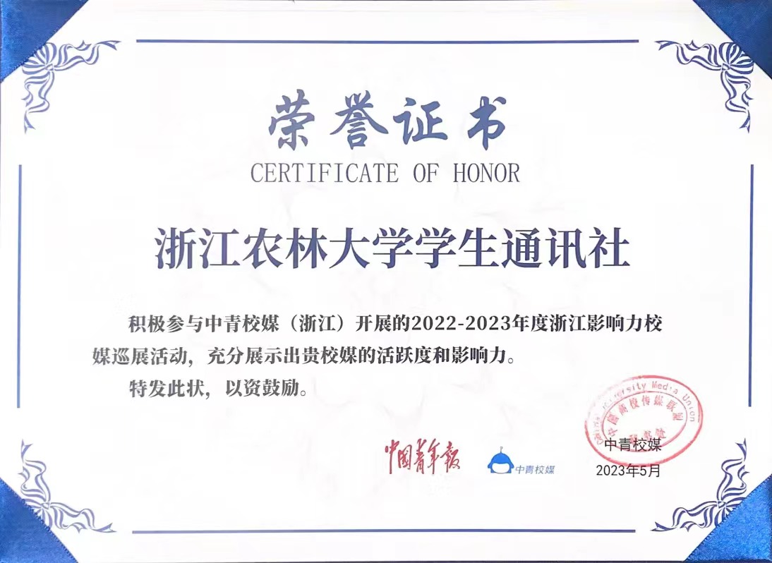 5月13日,由中国青年报社、中青校媒(浙江)指导,浙江工商大学承办的2023年度中青校媒(浙江)年会在浙江工商大学图书馆报告厅召开。来自浙江大学等34家校园媒体参加此次活动。BEAT365英国官网学生通讯社社长项诗瑶、学生通讯社融媒体中心副主任王若溪出席会议。会上表彰了10个浙江省“2023年年度影响力校媒”,BEAT365学生通讯社脱颖而出,被评为“2023年年度影响力校媒”。