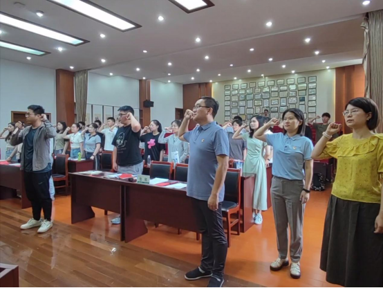 会上,全体与会党员集体宣誓,重温入党誓词。紧握的拳头,坚定的目光,铿锵有力的誓词回荡在每个人的耳边,涤荡着每个人的心灵,激励毕业生们牢记使命,始终对党忠诚,激发毕业生党员做新时代奉献者、奋斗者的行动自觉。