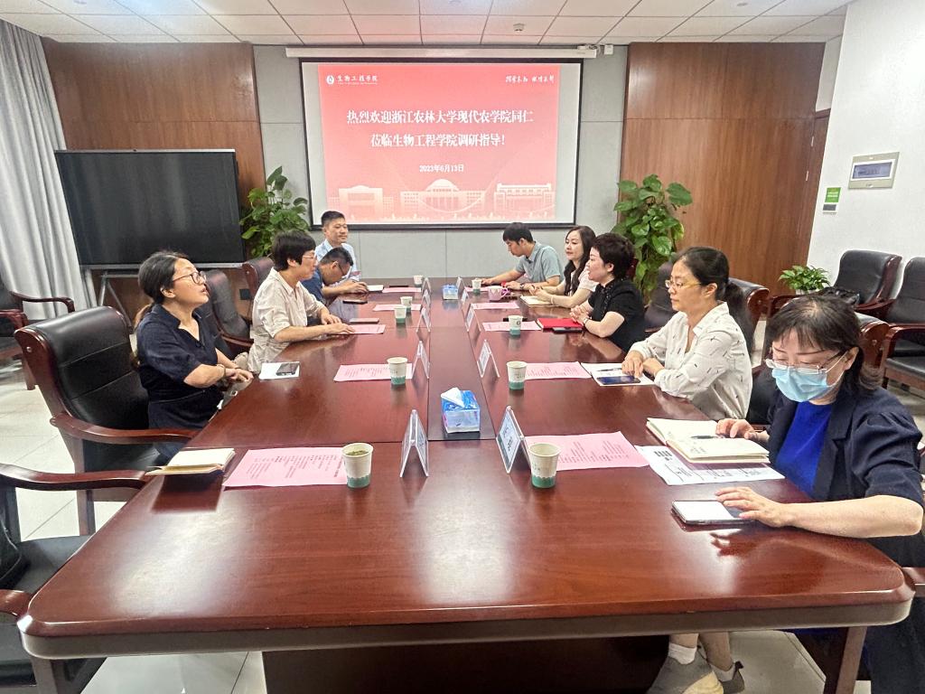 6月13日,农学院党委书记梁卫玲一行5人赴浙江工业大学生物工程学院开展党建与思政工作专项调研。浙江工业大学生物工程学院党委书记王方、党委副书记金鑫及教工党支部书记代表和相关教师参加了座谈。