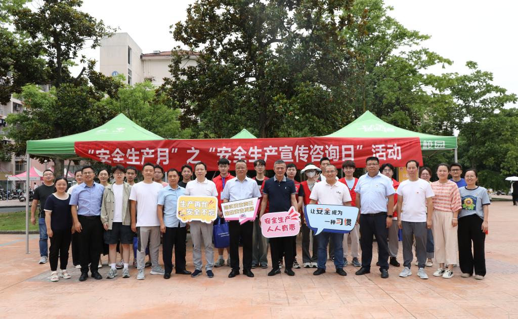 6月16日中午,后勤中心在东湖食堂广场举行安全生产宣传咨询日活动。杭州市规划资源局临安分局、临安区应急管理局,校保卫处、后勤中心党委相关负责人到场指导。