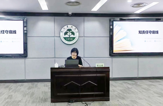 赵志娟以《知责任守底线》为题,从科研管理角度介绍了科研诚信的内涵,引出科技人员的责任与科研过程中的红线与底线。同时,她还列举了我省各类科研失信案例及处理措施,对师生起到了警示教育的作用。