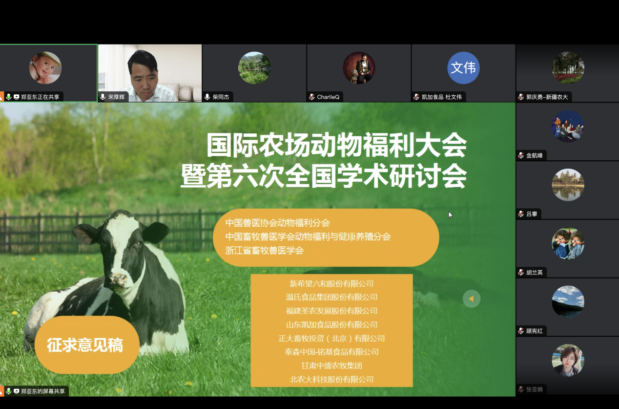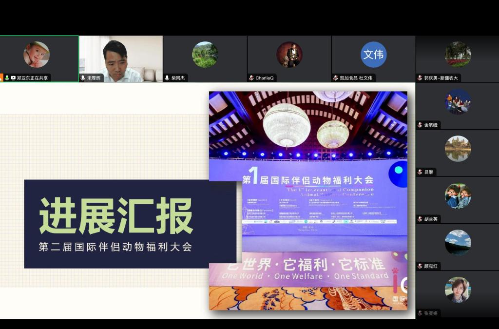 7月19日,中国兽医协会动物福利分会以线上形式召开2023年工作会议。会议由动物福利分会会长宋厚辉主持,动物福利分会全体领导班子成员及中国兽医协会刘祥参加本次会议。会议听取并讨论了第2届国际伴侣动物福利大会和国际农场动物福利大会暨第六次全国学术研讨会的筹备事宜。