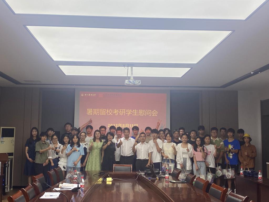 近日,化材学院开展暑期留校考研学子慰问活动,学院相关领导、全体辅导员及各班级留校考研学生代表参加本次活动。