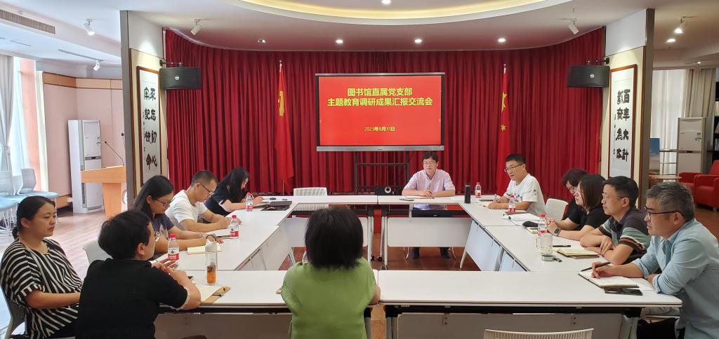 8月31日上午,图书馆直支在东湖馆党员之家召开主题教育调研成果汇报交流会,领导班子成员、相关部室主管及情报服务部全体工作人员参加会议。会议由直支书记褚锡强主持。