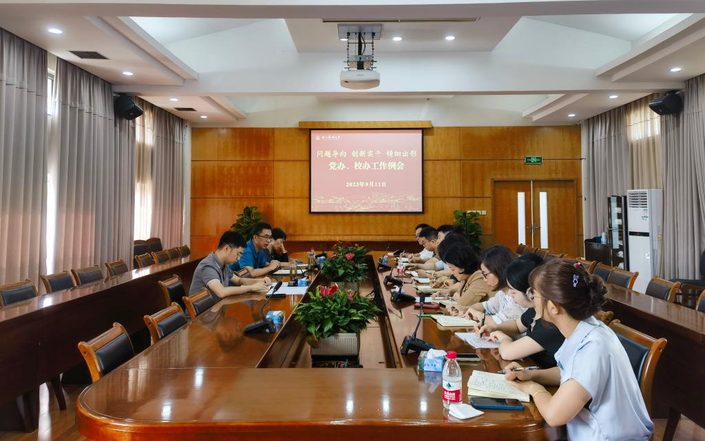 9月11日,党办、校办召开以“问题导向、创新实干、精细出彩”为主题的工作研讨会,党办、校办主任董杜斌主持会议。