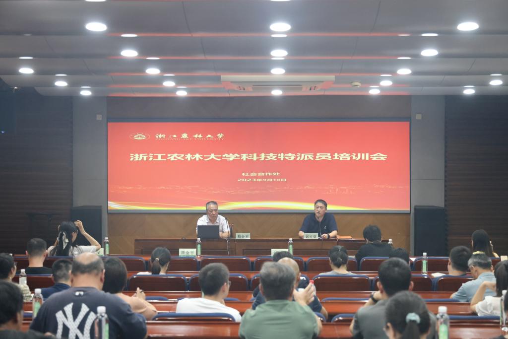 培训会邀请了在全国科技特派员制度推行20周年总结会议上获通报表彰科技特派员、浙江省突出贡献科技特派员斯金平老师和国家CVCC高级礼仪培训师钟斐老师为科技特派员做相关的培训。社会合作处相关负责人在培训会上传达了浙江省科技特派员工作20周年总结表彰大会精神。