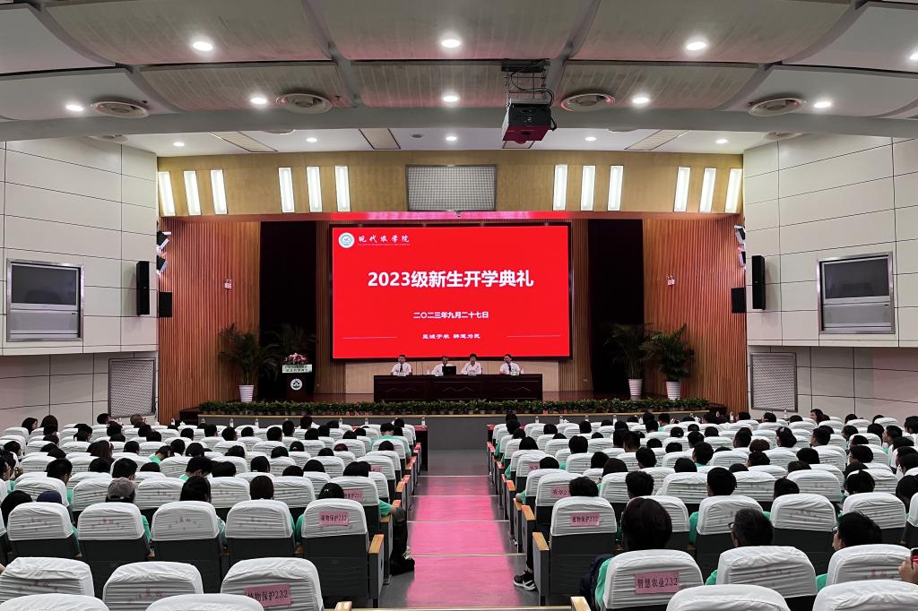 9月27日,农学院2023级新生开学典礼在图书馆第一报告厅举行。学院院长曾大力,党委书记梁卫玲等相关领导、各学科专业负责人、辅导员、新生班主任、师生代表以及全体2023级新生参加典礼。