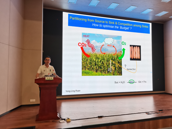 阮勇凌教授用丰富的图片、详实的数据、通俗的语言,讲述了糖代谢及糖信号对植物发育和产量的调控机制,为大家展示了能量代谢如何偶联基因表达调控植物发育,植物在进化和驯化过程中控制光合产物分配的分子机制以及通过优化养分分配,提高作物产量和抗性的途径。阮勇凌教授科研积累深厚,报告深入浅出,引人入胜。