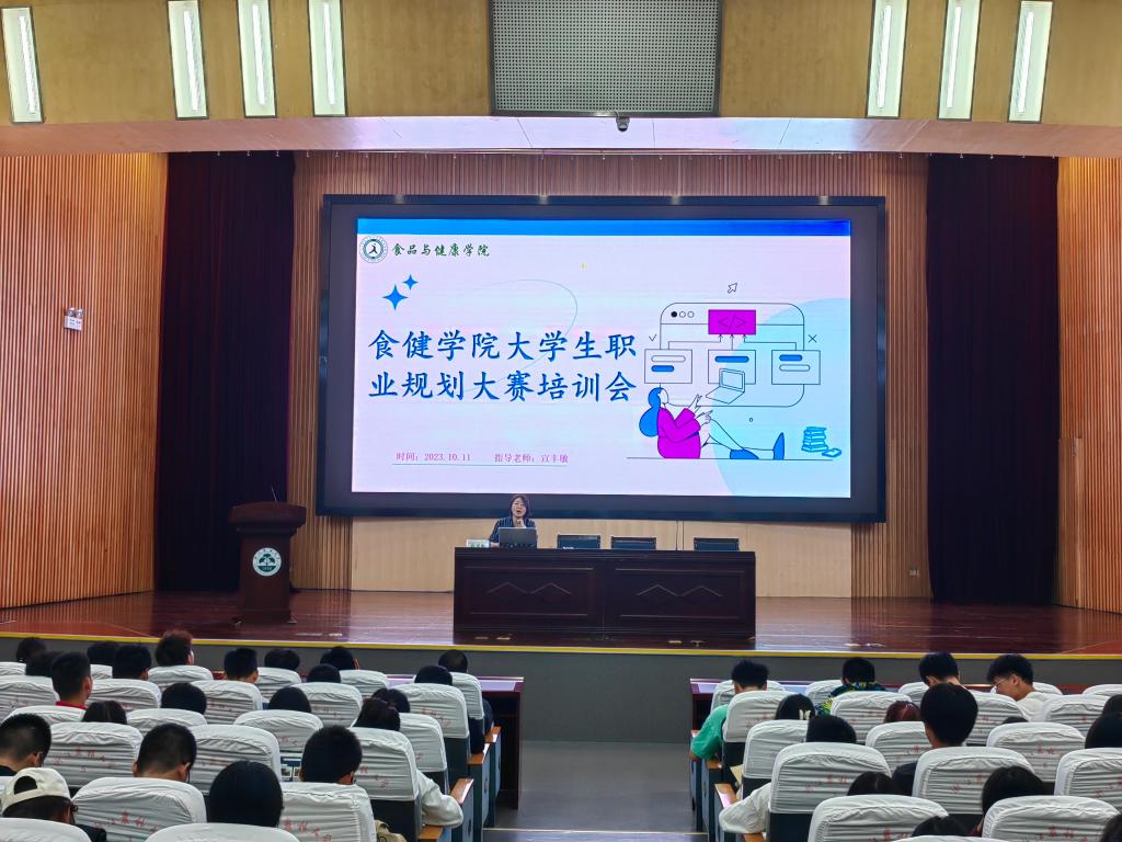 10月11日晚,为帮助新生规划学业及学业发展,食健学院在图书馆第一报告厅举行大学生职业规划大赛培训会,学校就业中心宣丰敏老师主讲。