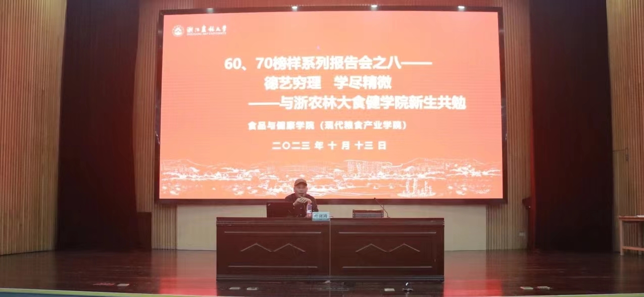 叶剑鸿以“德艺穷理,学尽精微:与浙农林大食健学院新生共勉”为主题,从宽广的视野观察世界、扎实的成绩完成学业、健全的人格走向未来三个方面结合自己的故事和案例,强调专业、博学与人格的统一,与师生作了深入的交流。同时,他鼓励同学们从中华优秀传统文化中汲取能量,围绕“立德、立功、立言”来拓宽生命的宽度与厚度。
